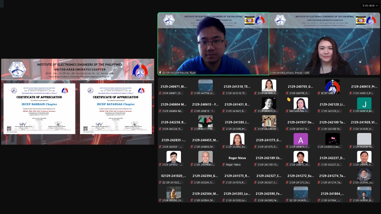 The technical session entitled “Fundamentals of Email Security” and led by Mr. Mickoe G. Domingo on March 22, 2025 offered valuable insights into the world of digitalization. It shed light on the vulnerabilities we often overlook in our daily digital interactions. The engaging discussion sparked meaningful dialogue and encouraged participants to become more vigilant with their digital footprint. The Zoom room buzzed with healthy, thought-provoking exchanges. The online event was attended by participants from local and international chapters.